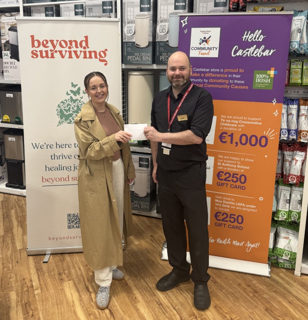 Beyond Surviving receives €1,000 donation from Castlebar Home Store + More Community Fund