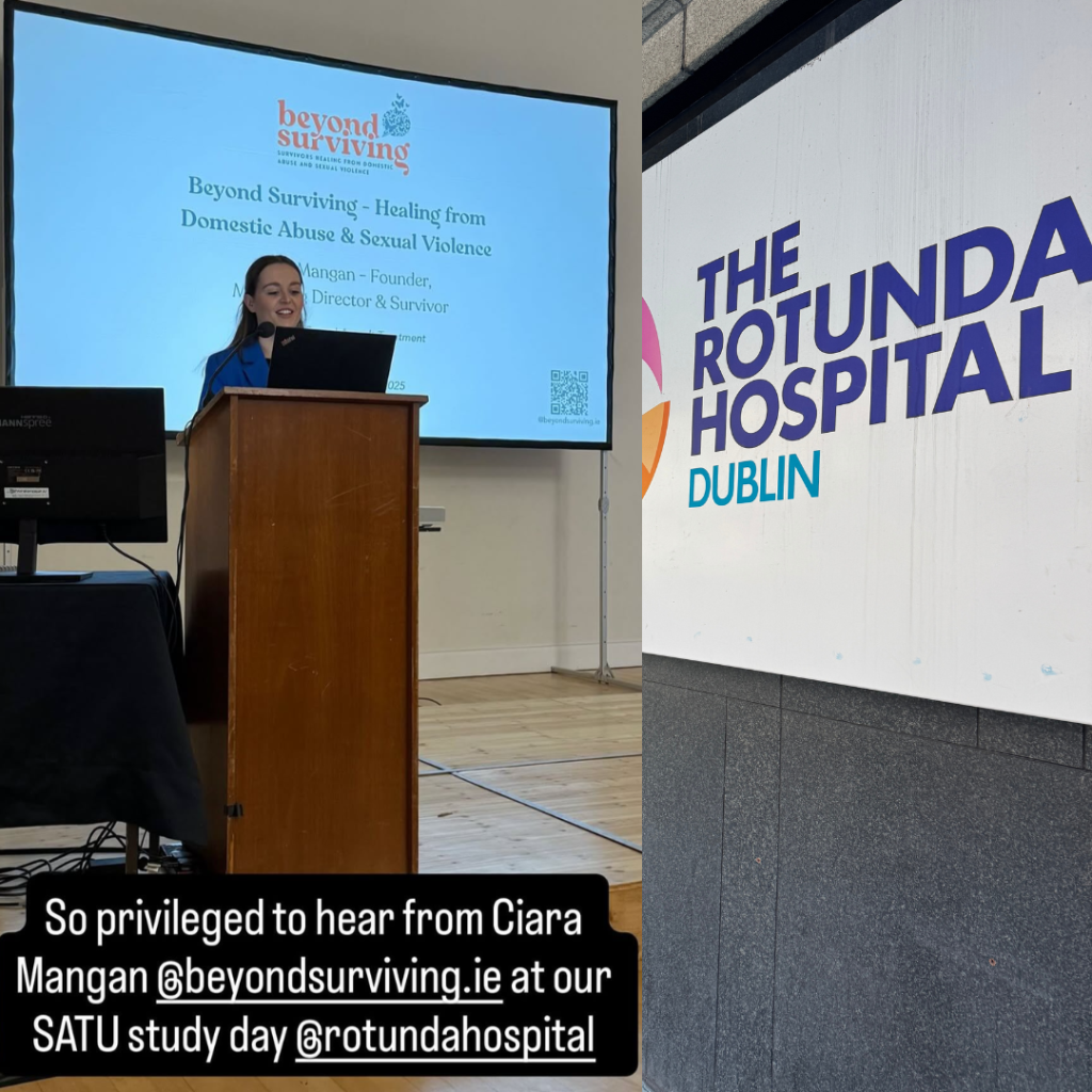 Our founder, Ciara, was pleased to contribute at the National Sexual Assault Treatment Unit Study Day at the Rotunda Hospital, formally introducing Beyond Surviving to the sector and highlighting the gap in post-crisis recovery support for victim-survivors of DSGBV, as well as Beyond Surviving’s critical role in bridging this gap collaboratively with the sector as a whole.
