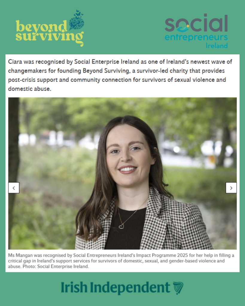 Ciara Mangan, a survivor of sexual violence, has founded Beyond Surviving, Ireland’s first survivor-led charity to provide much needed support and connection for those healing from domestic and sexual abuse.